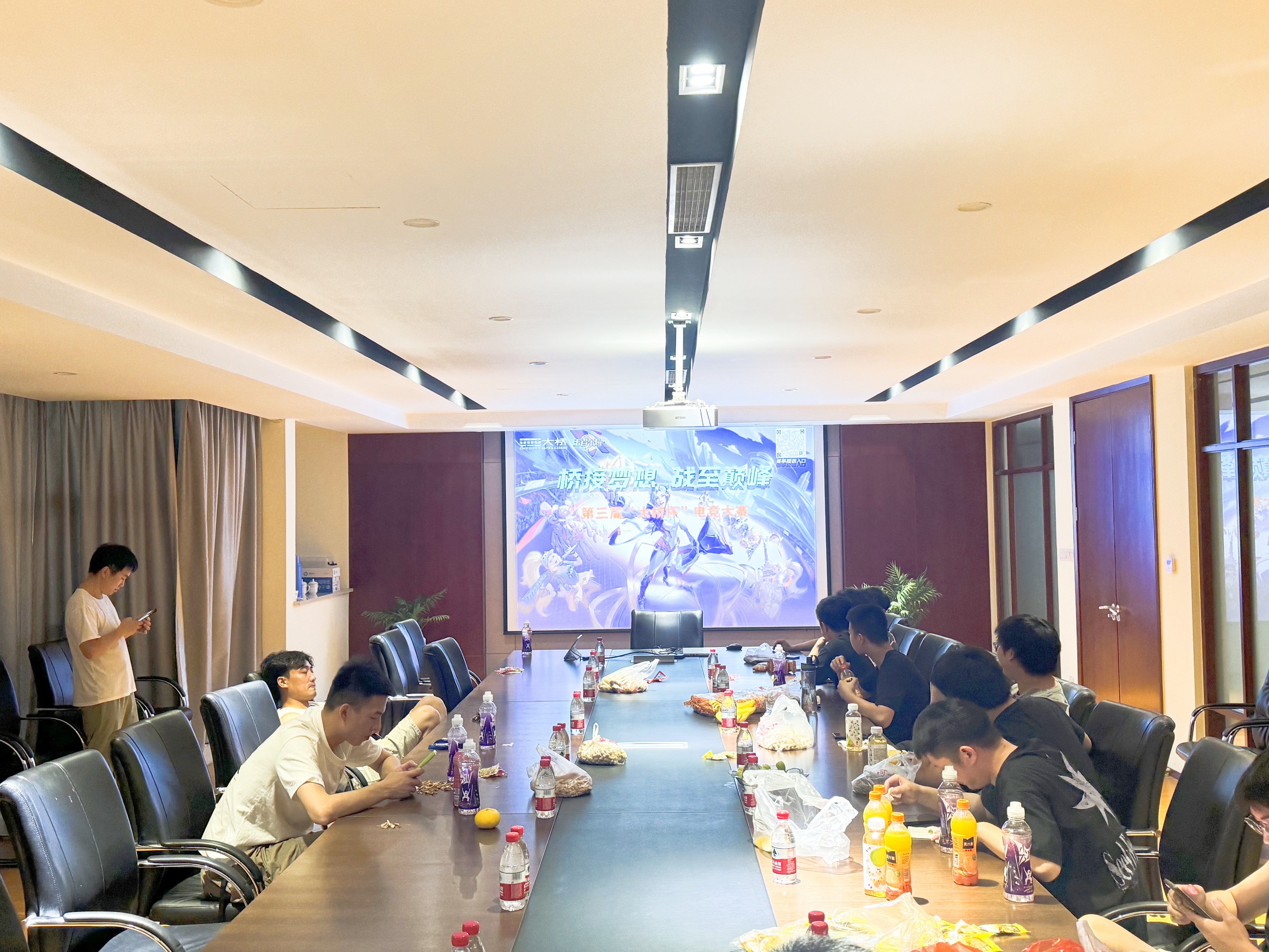 本届电竞大赛竞赛项目为王者荣耀,分成团队竞技和个人竞技两个项目,设有食堂直播区、会议室现场直播区两个观赛区。