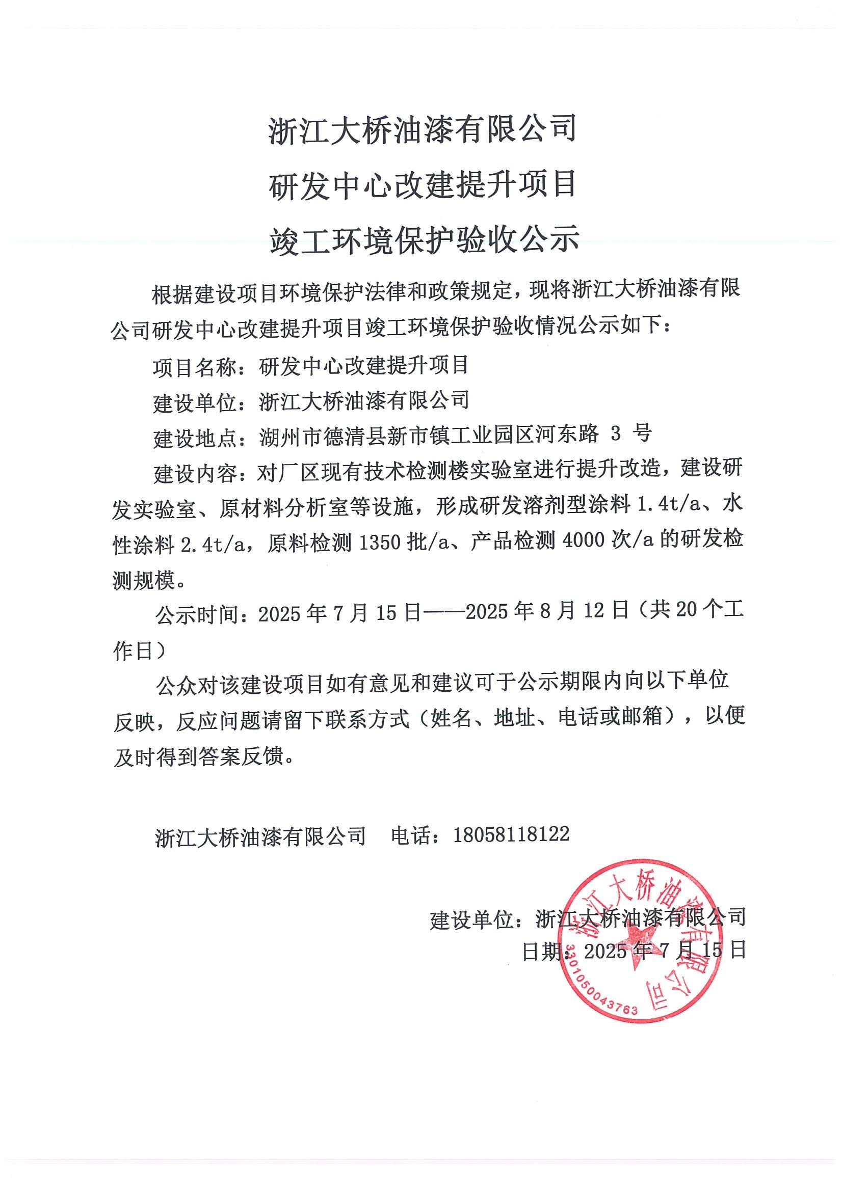 浙江花季传媒在线观看入口IOS破解版油漆有限公司研发花季传媒下载APP网站改建提升项目竣工环境保护验收公示